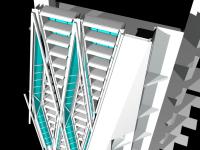 In order to translate these metaphors into buildable forms of specific measurable dimensions, a concept based on the Fibonacci Series is conceived as a form-giver to be used for shaping the tower. The series is a mathematical progression of numbers where the following number is the sum of two previous numbers; 1,1,2,3,5,8,13…. From this concept, a series of segmented façade surfaces is formed beginning from the roof, 1 storey, 1 storey, 2 storey, 3 and so forth to 13 storey for the lowest façade surface. These surfaces, formed of diagonal elements are then set in at different planes, and detailed by façade engineering consultants based on the unitized curtain wall concept. The sides of the tower, designed of precast RC fins with punctuated windows, serve as a counterpoint to the visually lighter Fibonacci façade.
