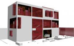 The 3-storey single family house was proposed to be built on a 21m by 10m site located in Mohammadiyah district in North Jeddah. The house occupies an area of 16m by 6m. The site is adjacent to neighbors from the north, east and south, while west elevation overlooking the street. The ground floor is reserved for social and living activities while the upper floors serving as the living and sleeping quarters for the family. The men reception room on the ground floor has a separate entrance on the west elevation. The family entrance, on the north elevation is through the open space used for outdoor sitting as well. The outdoor space is meant to be an extension of the house. Some of the elements are derived from traditional houses.The lattice work was used to add a sense of transparency and openness throughout the mass of the house yet maintaining privacy. Ornamentation derived from carpet designs was used to introduced the rich gold color of the interiors where the play of light and color was taken into consideration.