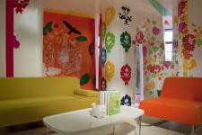 The first training facility called Espacio C (C Space -C for the initials of Coca Cola, Training, Quality, Commitment and Creativity in Spanish-) is located at the Mixcoac Distribution Center on the southwestern area of Mexico City. It includes three separate rooms that can be joined together for common activities, a mediateque, snacks bar, souvenir store, data and electrical connections and storage space. The brief also required to include elements from the different brands of Coca Cola FEMSA and to reinforce the company’s values in the space.