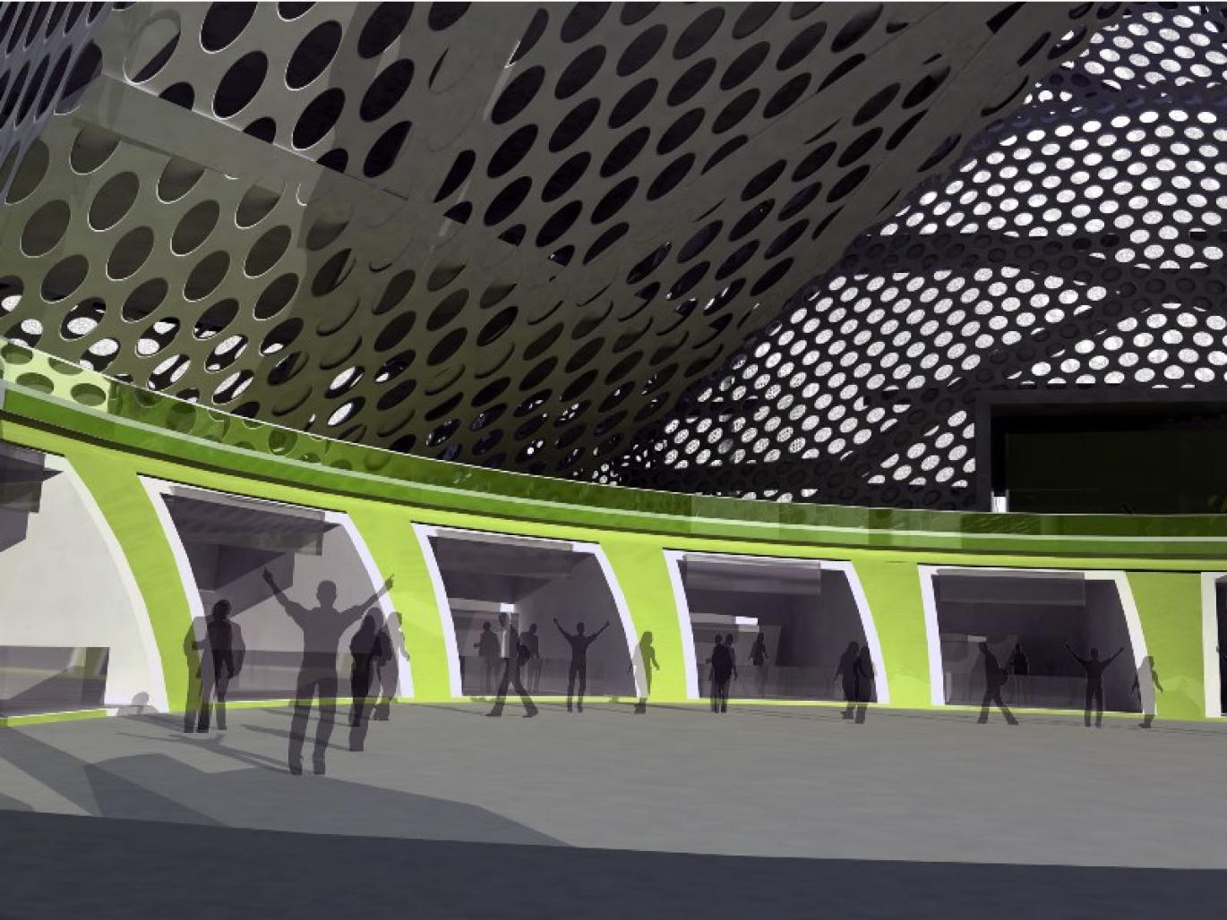 the design pulses through the multiplicity of overlapping pathways starting from the surrounding roads (Ring Road and the Corniche) , waterways (the river Nile and the Gulf of Asayala) , the roof of the building and in between spaces, and all of that to show the concept of guidance and awareness by creating points of interests along the pathway . at the end of each of them to become a significant engine , also creating a recognizable scenes to make the path's boundaries of that complex tissue mysterious in order to put an end to the complexity in a gentle way and maintain the vertical access elements along the horizontal ways which brings us to the origins or roots which is reflected obviously in the market place ( which is underground) to express the idea of the return to the origin ; and the idea of underground is to reflect the concept of return , consecutive services attract people and remove the barrier between people and the government or the Authority and gives