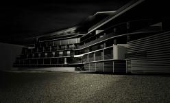 this multial building is located in jbeil, lebanon. one of the oldest cities in the world. on the entrance we have shops on the right and a 2 floor restaurant on the left that leads us to the music hall. a public space link the entrance with the hotel situated next to the music hall, and a museum is placed on the shore line, giving the visitors a natural view to the sea that forms a big part of jbeil characteristics.