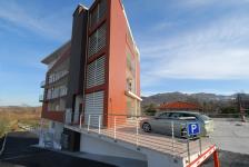 The building is featured by 10 house units that measures about 70 square metres each one with the services area towards the balcony; then the living area and the night one are placed towards the valley. The economic space measures around 200 square metres on the whole; it’s situated on the ground floor near the reserved car parking. The access to the garage floor is possible by using the carriageable side flight.