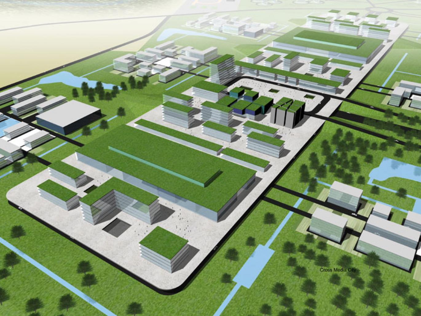 program: 521.000 m2, cross media city including media square, studio centres and creative business centres, business estates, residential park, sport park