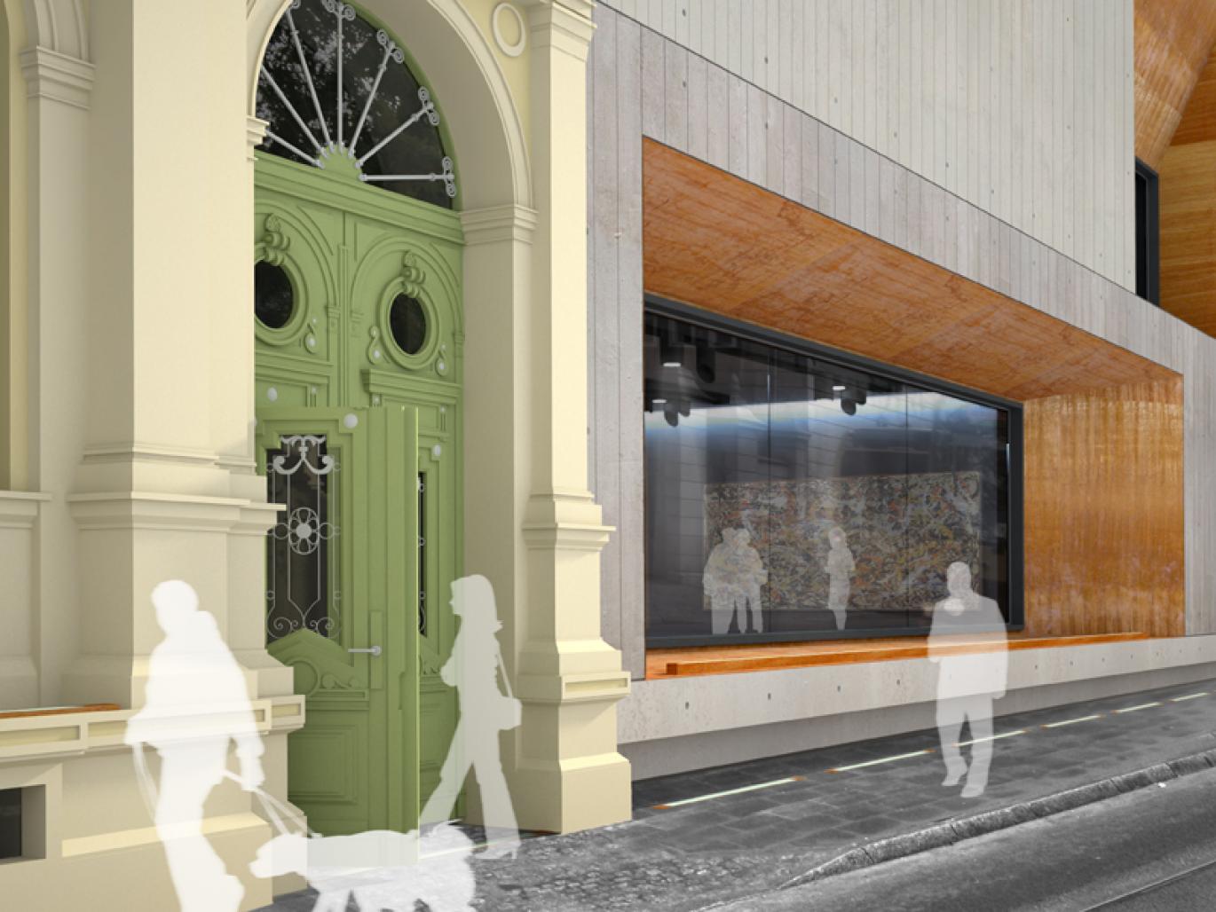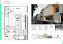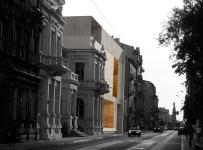 The project itself is the design of the auction house planned as the rehabilitation and expansion of the building of the former ‘credit association of the city’, which is located on the pomorska street in lodz. the form and means of architectural expression are intended to stimulate feelings of the contrast between the old and the new structure. at the same time new elements architecture that is not dominating the old building, and can serve as a suitable background for the next decades. the mayor architetural means in the outside of the building, are: concrete surfaces and large glazings with surrounding large sheets of steel. the layout of s attempted to show how to proceed in the crowded lots located in the historic downtown. complement of the auction house are: multi-storey car park serving the entire complex, and independently ing restaurant with all the necessary facilities and office.