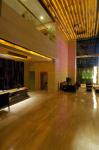 the underlying concept was to redefine the way a hotel is perceived. the existing box like structure was completely transformed by angular planes d to form a dynamic juxtaposition of form that delineates the structure now. colour has been provided not in a static way by paint but in a dynamic way by colour change lighting that constantly transforms the lounge bar completely while being an important element in the lobby, in the form of projected glass modules from a marble clad wall. textures imparted by natural look materials play an important role throughout the interiors in the restaurant, the corridors and the rooms.
