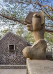 The hip roofs face the strong westerly monsoon winds at 45 degree slopes, while they taper off gently to the east at a 30 degree slopes! Glass, transparent panels facing east and west, set back in the verandah allow views into the vast landscape and vision through the buildings. A system of outdoor courtyards and terraces cluster around a central podium. While the language remains as in earlier works, extensive ceiling relief cast in concrete add a new dimension. The open patterns of parallel walls draw in exterior spaces, integrating the structures with the landscape. This sensitivity to nature draws on American traditions as diverse as Wrights Taliesin West, and Jeffersonian vistas at Monlecello.
