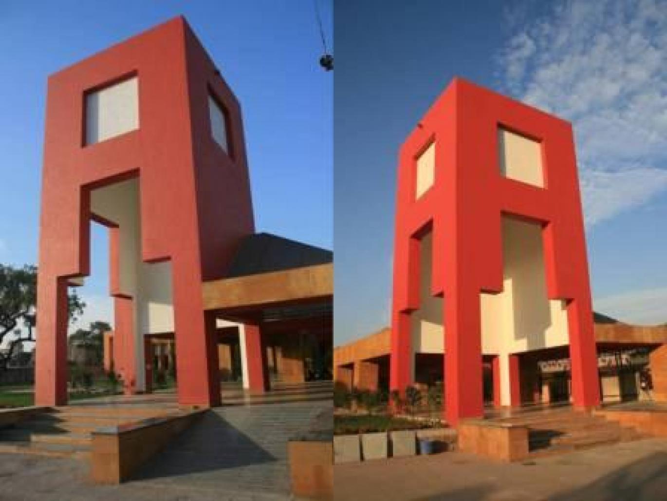 a multi activity community and training center situated in jalna, maharashtra, in india. the building caters to the requirements of the large gatherings, s, training program, etc. the building designs to cater to large gatherings. the sense of direction, legibility required for movement of huge crowds has been essentially addressed through a dominating presence of a very wide corridor. the symbol of festivity, celebration and honor id depicted through the huge entrance tower at the entry.