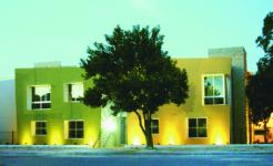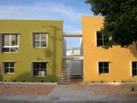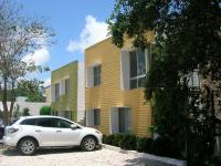 jorge gracia heredia has d four contemporary apartments encompassed in this delightful structure. located in the city of cancun, and adjoining a beautiful green tropical park. this is an ecological design made with concrete and a covered with a curved fascia with ship-lap siding along with exterior window treatments creating interesting lines and shadows. the structure is characterized by the creation of clearly identifiable geometric lines and complimented with earth tone colors that enhance this simplistic, yet intriguing design. this energy saving design shuns the high temperatures of the region. the apartments are configurable for the owners with choices of either, one, two, or three bedroom floor plans.