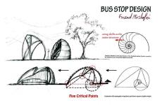 The bus station is designed in a dynamic form by using natural shapes, like spiral structures in sea shells, keeping all proportions, symmetries, harmonies and by applying the golden ratio. Actually the outer line is a logarithmic spiral from a sequence of golden triangles. Five critical points on these triangles are used to develop the idea and they are all put in the right way to result in an esthetic appeal.