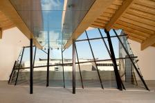 The third floor addition is sub-divided into three interior working spaces by two intervening, 42’ long, mullion-less structural glass sky lights, which spa