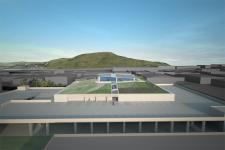 In addition to the parking, 40,000 square feet of retail space, and a 10,000 square foot restaurant, will be located on the interior perimeter of a five sided, three story, open courtyard space. The three floors of retail and space and the three story courtyard volume are positioned roughly in the center of the upper floors of the parking structure. Two full levels – floors two and three below grade – are filled with parking. Retail level -1, one floor below grade, retail level 0, at grade, and retail level two, above grade, are directly accessible from parked cars on those floors or from stairs and elevators that connect all garage floors to walks and bridges on all retail levels.