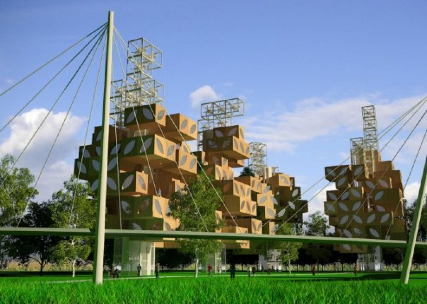 At the request of the opportunities and possible variations of easy assembling, replacing, or adding extra module depenidng of a family needs, made in recycled materials (wood, plastic, glass, aluminium), each prefabricated module consist in build-in facilities, furniture, toilets, shower, kitchen etc. depending on function of each cell, also wind mills are additional modules on the top, produce energy which cover 25% of required energy.