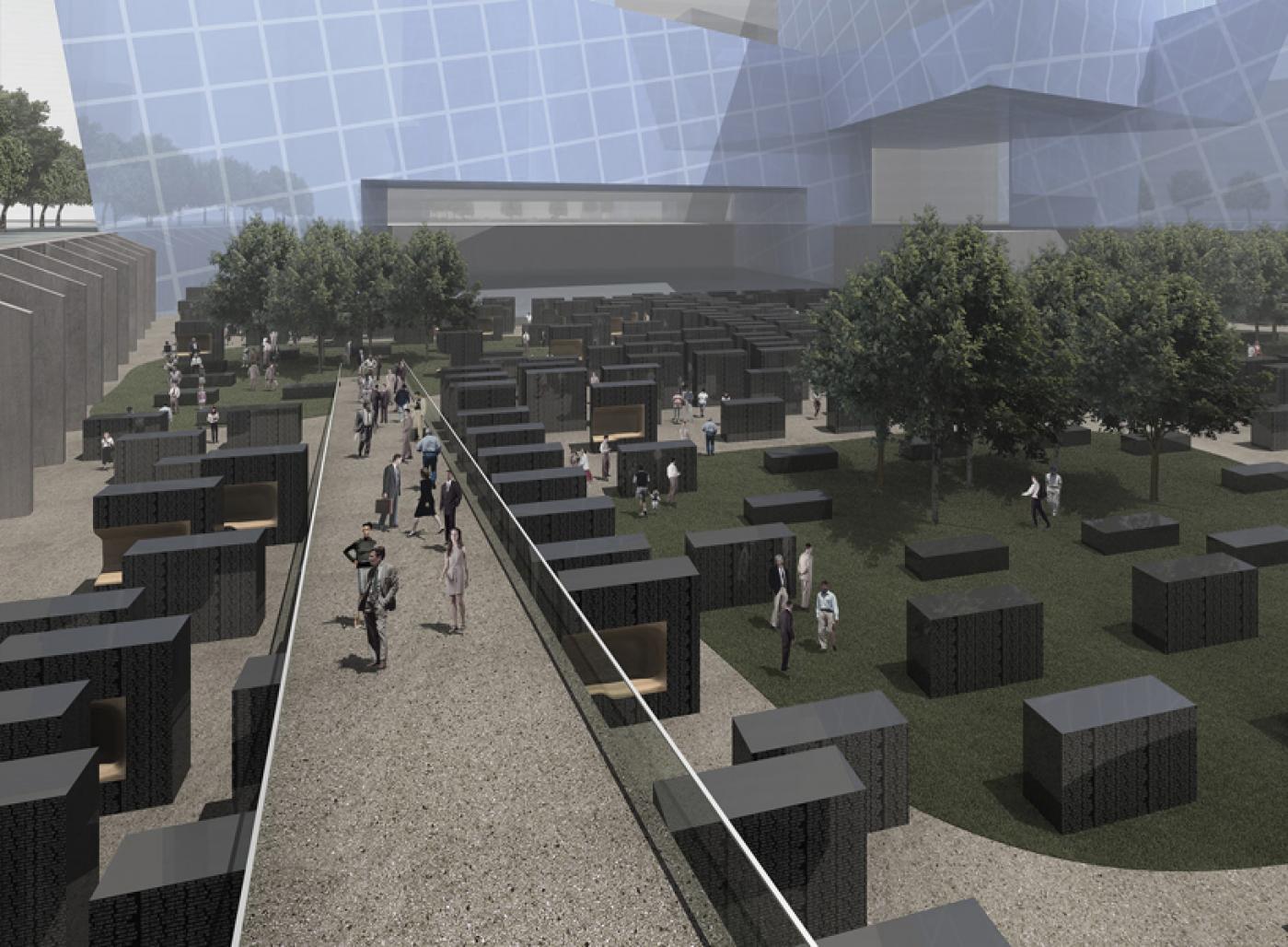 IN AN INTEREST TO LOOK BOTH BACKWARDS AND FORWARDS, TO EMBODY BOTH HONOR AND HOPE, P-AR SOUGHT AN ALTERNATIVE TO THE CONVENTIONAL FORM AND SINGULARITY OF HISTORIC MEMORIALS. WE PROPOSE TO BREAK UP THE MEMORIAL. DISPERSING IT ACROSS THE SITE WE CREATE A MEMORIAL GARDEN FOR CONTEMPLATION AND DISCOVERY. THIS CONTINUOUS GARDENSCAPE HAS NO TRUE BEGINNING OR END, NO DISTINCT ENTRANCE OR EXIT. IT’S MAZELIKE QUALITY AND SPATIAL VARIATION CREATES AN ENVIRONMENT OF INFINITE EXPERIENCE. A MEMORIAL TO RETURN TO AGAIN AND AGAIN, EACH VISIT OFFERING A NEW PERSPECTIVE, EACH VISIT DIFFERING FROM ANOTHER.