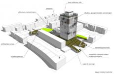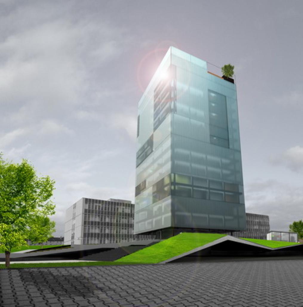 Proposed development was based on idea to separate pedestrian area from the traffic. Pedestrian area is a green, friendly terrace with office entrances. New space would create new quality of use. In the center of the terrace is located integrator- information building for customers. In that way customer activity is separated from main buildings where offices for clerks are located.