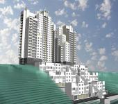 residential buildings with administrative offices and parking on Motorniy street in Kyiv