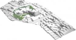 In one section of town known for its aridity, lack of natural landscape features and buildings of public congregation, the bill proposes potentiate the green elements that surround the university, reforesting with native trees and merging this new landscape areas and public open campus. It is a small green space for its topography stands out from the dense buildings and integrates with other potential spaces such as parks sector, the Church of Santiago and its surroundings and to the east with a possible environmental corridor accompanying river.
