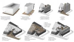 The green base is folded and delays, forming a major new access, large open urban gesture to the community, you can use the different spaces that the university offers as the auditorium, the oratory and law clinics, without interfering with the operation own campus.