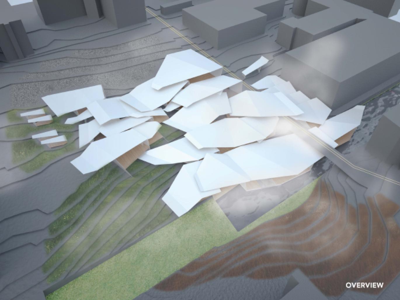 thus, the building becomes an apparatus for water recycling and purification; aesthetically the registration of steam becomes a visual indication of the presence of inhabitants inside the building; programmatically the social, mental and physical components are constantly reorganized by the temperature of the immediate environment.