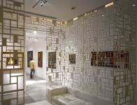 A partially imposing box made of muted white, fretted-screen panels anchors and encloses the formal entrance space/ meeting area while creating a private space for customized retail and viewing of the shortlisted artwork before its final sale. An information hub characterizes the entrance space by generating interest, before one actually steps into the gallery. A composition of shelves dominates the entrance space, and is used for displaying catalogues and other publications. A flat screen tabletop endorses the customized, luxury retail environment; through its e-functions of information, data, publications of each of the artworks. A full wall-sized multi-media projection screen at the entrance façade exhibits the gallery collection, the pedagogy of the artist and information on the art works itself.