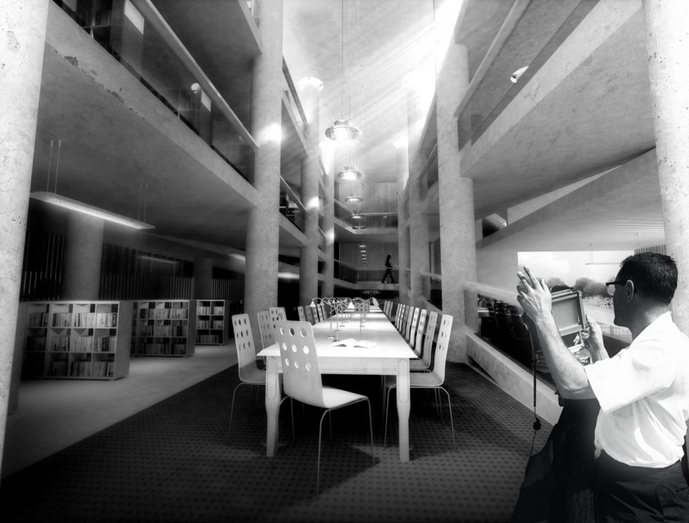 penetrates through the facade and exposes the library