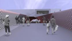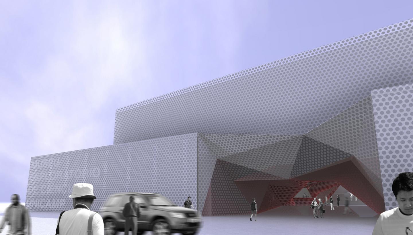The main access is in a triangulated metallic cave, Its structure diminishes the pressure suffered for the action of the winds, beyond create an interesting fractal space.