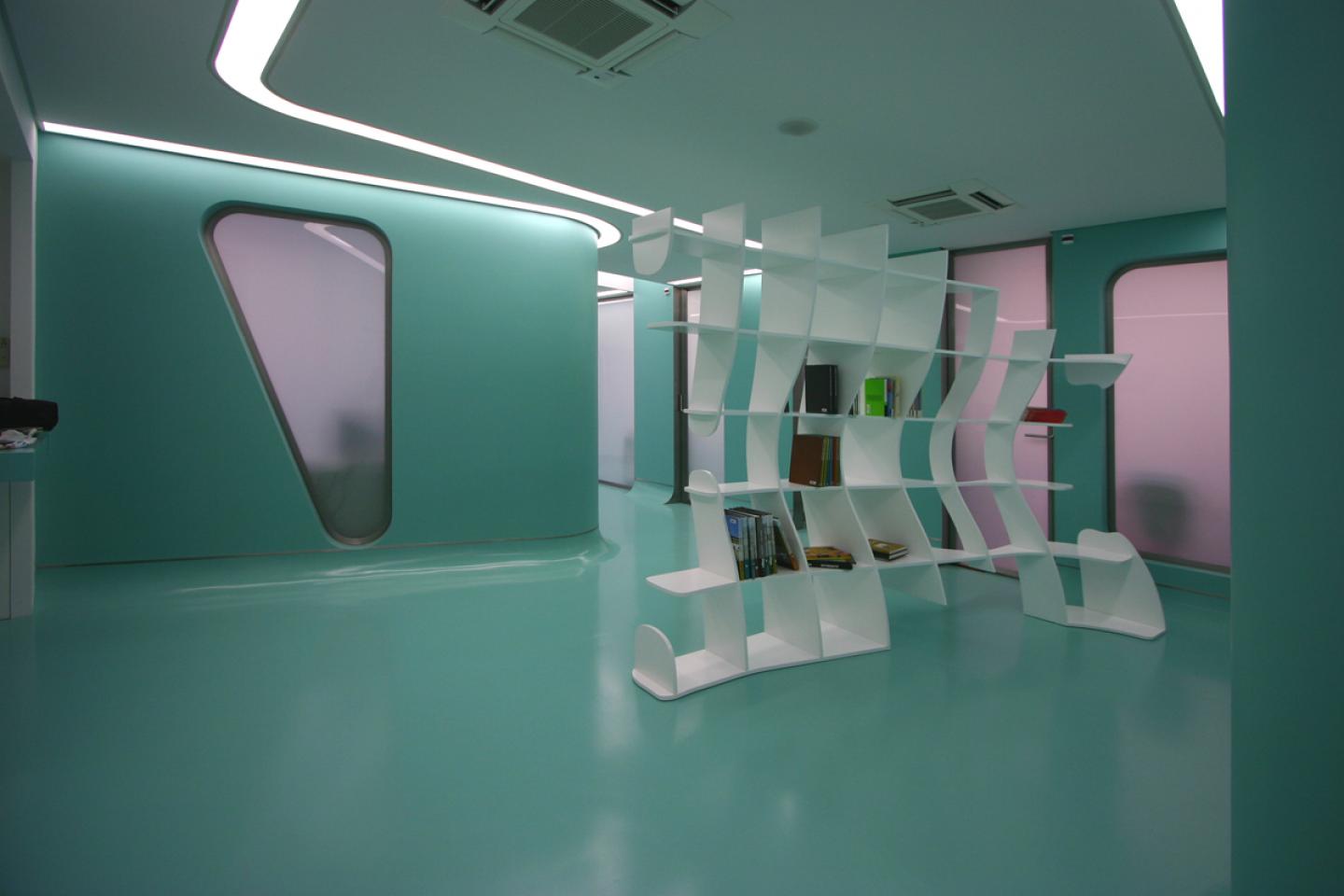 The extension explored lines and colors that embrace contemporary concepts of space and comfort. The new space became feminine, in contrast with the austerity of the existing space. It became colored, more dynamic, more spontaneous, more free, creating a lighter atmosphere and freeing patients from the stress of a dental clinic.