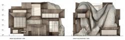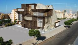 On the other elevations, a system of connected giant frames, made of cor-ten and corroded metal, show the events of the Centre.