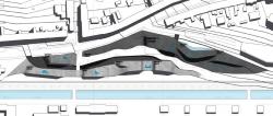 The project introduces a mixed typology of building and landscape reflecting the mixing of social typologies - high class inhabitants and sub-culture skaters. The site renders a vibrant biotope for new lifestyles and cultures at the edge of the city.