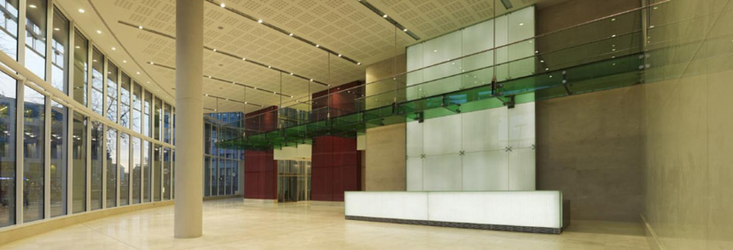The walkway is 1.5m wide and nearly 18m long, comprised of a glass floor panels supported on a grillage of glass beams which in it’s turn will be suspended from the concrete structure of the double height atrium by means of solid stainless steel rods. Total weight of the glass is about 12tonne, total weight of the assembly, including live load is 32tonnes.
