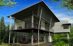 A small villa designed as a retirement house for a couple located in a hill site with panoramic view to the mountain planned to optimize natural lighting, cross ventilation and sustainable construction
