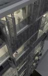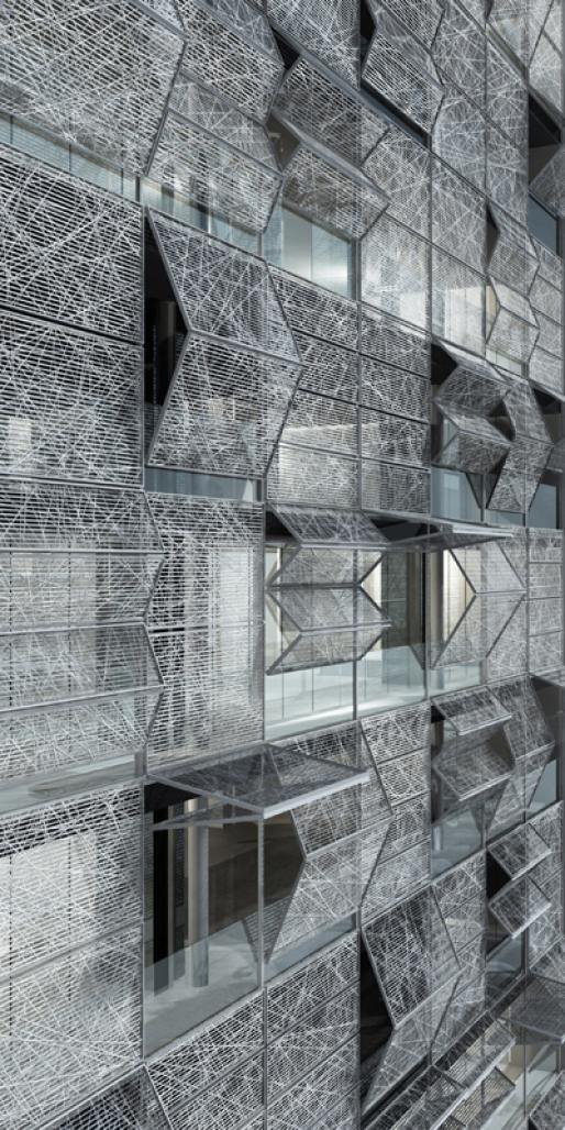 The structure of the building is a cast concrete structure. The north side is open and flexible through four columns supporting the structure. The circulation core structurally supports the north side.