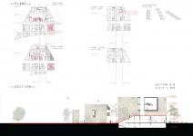 Students’ part is designed with elevated open yard to separate visually students from people walking on the street. Each room in students’ area is located independently from each other and connected with other facilities with bridges or with passages. Project implies also a dual-stream education.