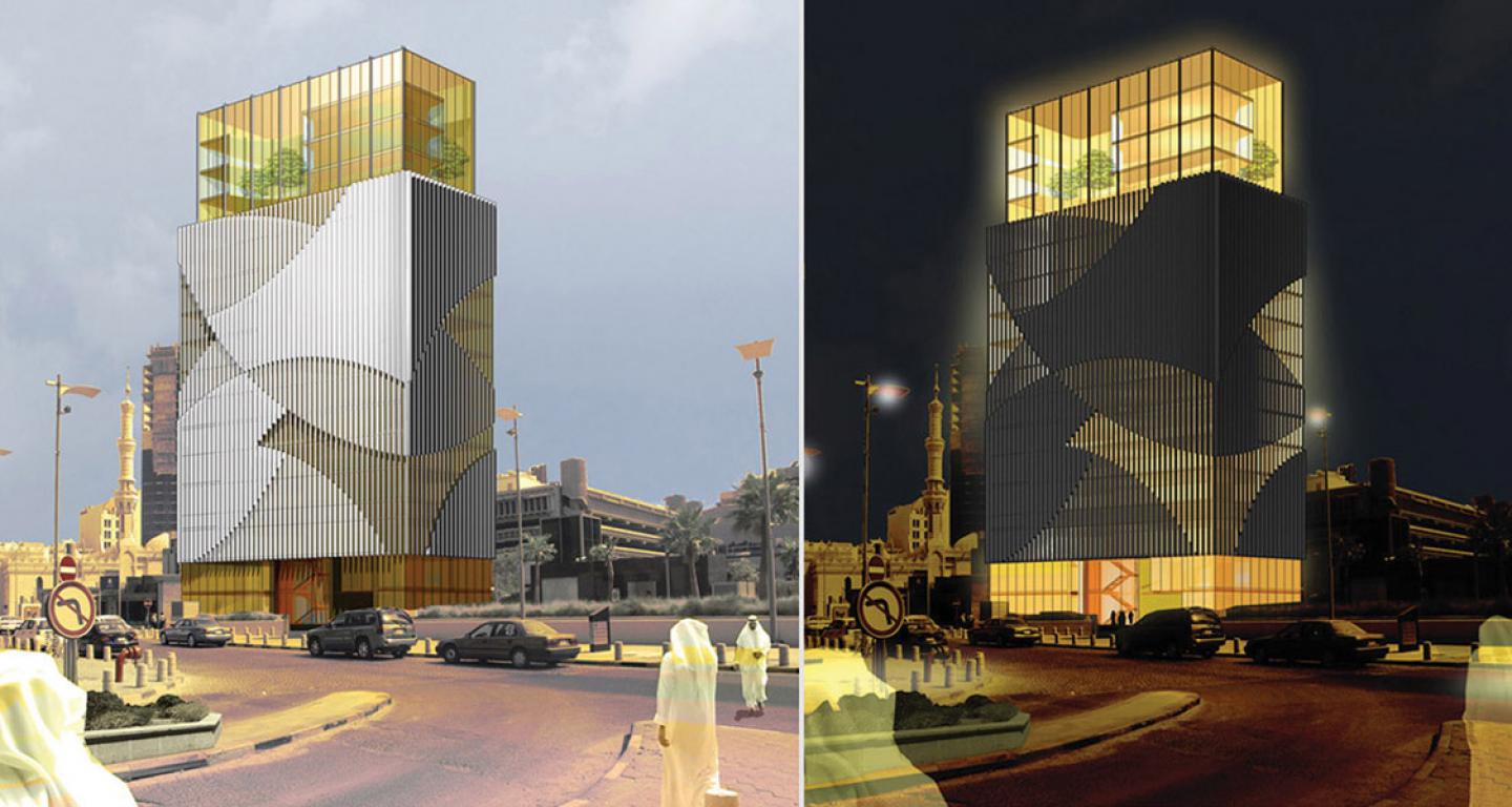 After acquiring a 960m2 central plot in Kuweit City, a major Kuweity financial investment company requested a concept study for a landmark mixed-use building that will house their headquarters and commercial space on lower levels. While site analysis informed space planning studies maximizing the commercial potential of the building’s soffit, several options were visited in terms of massing, materiality and elevation treatment that needed to incorporate both a shading system and a lighting system that will give the building a changing appearance by night emphasizing its landmark stature.
