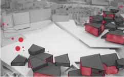There were four typologies for each unit: commercial use, apartments for four students, for a four-member family and for a retired couple.