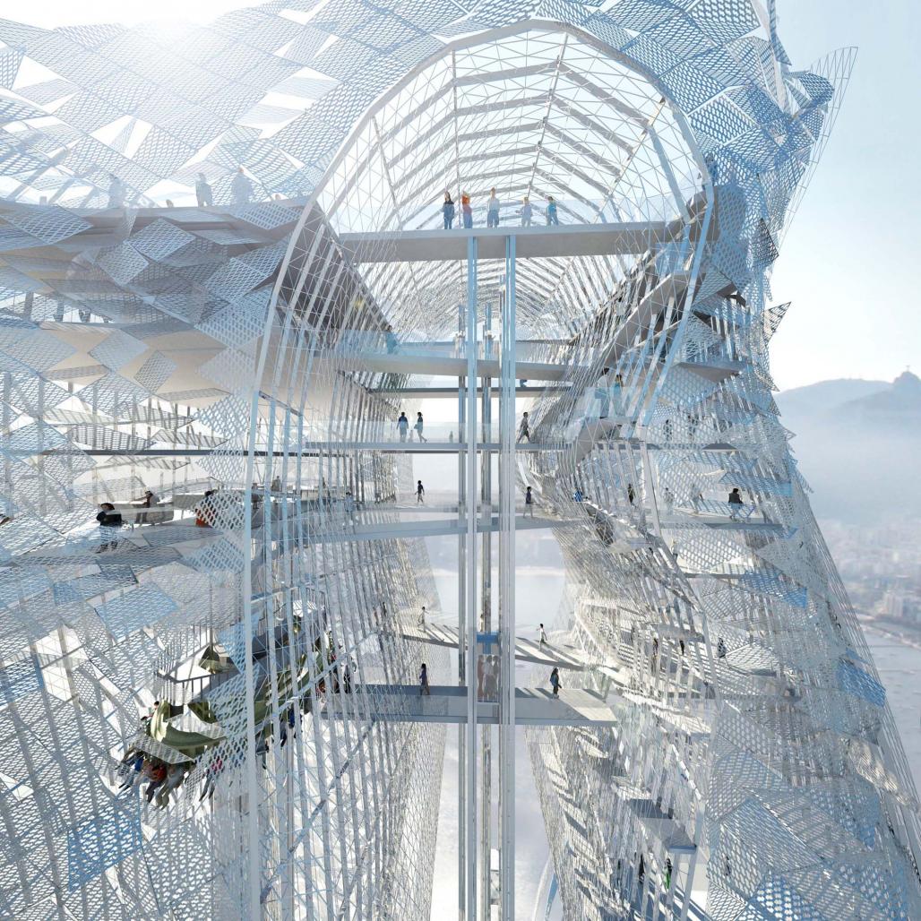 Programme : Observation points, auditorium, skywalk, bungee jump platform, climbing tower, gyrodrop, cafétéria, souvenir store, urban balconies, multi-usage space.