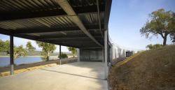 The ring is as respectful as possible, avoiding visual and physical barriers and integrating within an environment of great scenic and environmental value as neutrally as possible. It rises from ground level, floating without changing the topography. The visual difference between the inside and the outside is shaded by a line under the building, which varies throughout the day. Between the ring and the ground, in this shadow, a series of outdoor spaces are created, spaces of activity and essay.