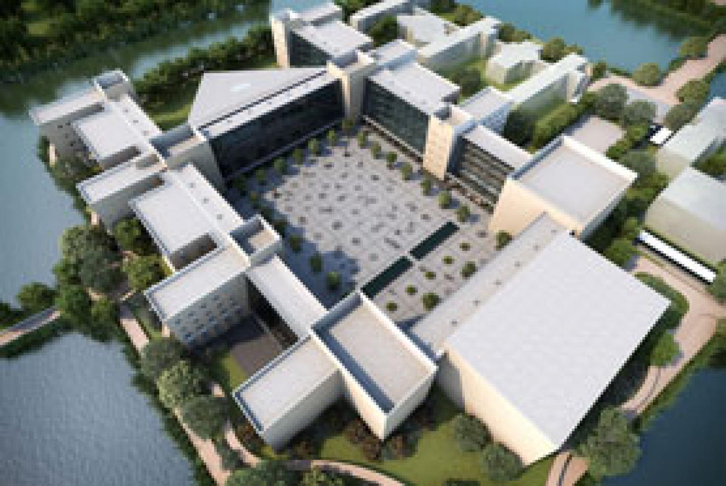 The Master Plan identified the central island as the hub of intellectual activity. Twenty temporary structures housing a Central School were removed and the school shifted to a peripheral location. The existing Library is employed as the northern façade of the new Academic Quadrangle and an iconic lecture hall complex creates impressive southern façade. Two large teaching wings enclose the eastern and western edges. All of these structures use multi-level arcades, protected from rain to inter-connect five levels of syndicate rooms, conference rooms, classrooms, teaching amphi-theatres, faculty offices, computer laboratories, and support utilities and amenities. The wings of the Main academic Building visually link to the existing teaching buildings creating cozy smaller quadrangles.