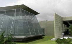 Aamby Valley International Residential School will accommodate 850 residential students, who will study from the third through the twelfth standards. The School will also cater to the resident community of the new Aamby Valley City. The residences for students over-look the campus from ascending slopes and the academic areas are fit into the edge of a plateau on the descending slope, leaving a relatively flat play area in between. The Catering Centre is conceived as three glass dining halls, which imbibe the barrowed landscape. The Administration Building affords excellent views of the mountainous landscape of the Western Ghats. The green carpet of grass spreads over the academic area, leaving sculpturesque multi-purpose halls floating upon a sea of verdant lawns.