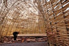 The building is realized on a wasteland of a ruined building site in-between the Shenzhen City Hall and an illegal workers camp. The design is inspired by insects. The bamboo construction methods are based on local knowledge from rural Guanxi brought into the city by the migrating construction workers.