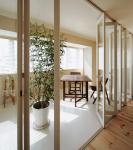 Whereas the outside windows have fireproof performance with aluminum sashes which look cold, we expected the inside windows to have the softy image such as wooden bihold doors.