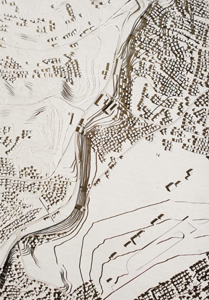 We have used this project to generate a critical mass of urban renewal, to imagine an anti-utopian strategy that would transform and interpret the archeology of Ain Ghazal as the gradual, progressive transformation of this chaotic "beyond” into a new urban system. We propose to project a set of slices across the entire field of the project’s area - over all that exists including the present enclave of the Water Treatment Plant- and to expose progressively this new system as play of solid and void.The chosen slice here is at the same time conceptual and operational; it will not subject everything in its way to its discipline but will act as a filter to absorb those entities whose right to survive is not contested. Along its entire perimeter it will generate a string of hybrids. To achieve its ultimate coherence, it will invest the so far isolated fragments with a premonition of identity.
