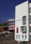 Egirdir tourism high school and hotel sits on a challenging site with a high slope. The building runs against the slope, thus allowing each level to have direct access.
