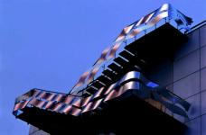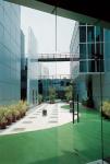 This morphology further helps to articulate the Thermal banking and Day lighting strategy. Internal and External courtyards abut the striations and terraces are provided to bring in maximum daylight. The intention was to create a virtually blinds-free environment. The terrace gardens also provide a high level of thermal insulation. A staggered skin treatment further enhances this function; the skin is developed as 2 sets of planes (solid and glass) - the solid set of planes is staggered to shade the glass surfaces to give protection from the sun and keep the glare out. This also ensures that solar ingress is limited to the winter months. The resultant of this strategy is an air-conditioning system which averages about 250 square feet per tonne of air conditioning which is far better than the industry standards.