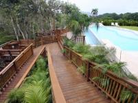 The Agama Residence is located in the outskirt of the city of Guaynabo, Puerto Rico. Being in a rural area we explore the duality of enclosing and sheltering the occupant from the exterior tumult of the street in order to disclose them into the natural enviroment that dwells behind the house. An indulating L shape wall divides the public front of the house fron the rear private courtyard. A series of architectural elements provide a layered transition from solid to translucent, establishing this junction between house and nature. Thus nature play an important role in the house as light defines forms and shapes; and wind and water generate continuous flows which activated the spaces and its inhabitants.