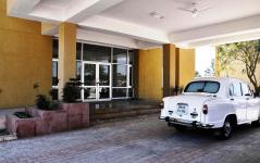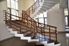 The built form is modernistic in character and ingeniously evolved with a pleasant blend of symmetrical plan, staggering blocks, overlapping masses, bold and bare facades in monochromatic finish, play of solids and voids, and light and shade. The internal ambience too has been enlivened with variations in height and volumes, abundance of natural light, and design of some physical features particularly the oval-shaped staircase passing through a voluminous stair-well. Being open on all sides, the interiors draw adequate natural light through judiciously placed fenestrations. Most of the office areas have been located to face the best orientation that is north-east and south-east. Glazing facing the south-east side is well protected by deep verandah which also acts as transitional space between outside and inside. To further protect the interiors from summer heat, all the blank surfaces incorporate cavity walls. The final outcome of the building form is thus a combination of modernity in function and finishes, and traditionality in harnessing the climate, and making it energy efficient.