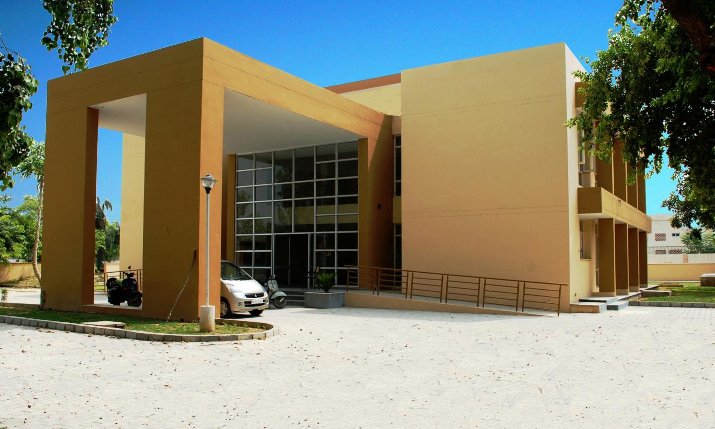 The strict geometrical order in the arrangement of various spaces, structural components, services and other elements, eco the Kahnian architectonics. The plan of this building is also based on the principles of symmetry. Architect feels that the human mind-set is more receptive to symmetrical objects, as symmetry is encountered everywhere – in nature, engineering, arts and science.
