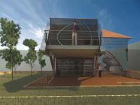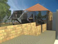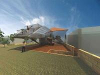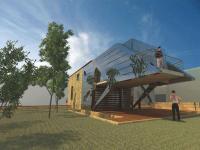 The horizontal metal prosthesis plugs itself into the existing structure, modifying its genetical configuration.