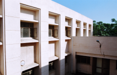 The building is designed in reinforced-concrete grid having a module of 6m x 6m. All service-pipes are housed in vertical shafts, which form a dominant and repetitive feature on the facades. These shafts also act as buffer-spaces between the outside and inside resulting in cool interiors in summers. A well worked-out combination of horizontal and vertical straight lines on the exteriors gives the building a strong and impactful expression of modernity. The building’s functional, aesthetical and sensible architecture is free from the clichés of the so called post-modernism.