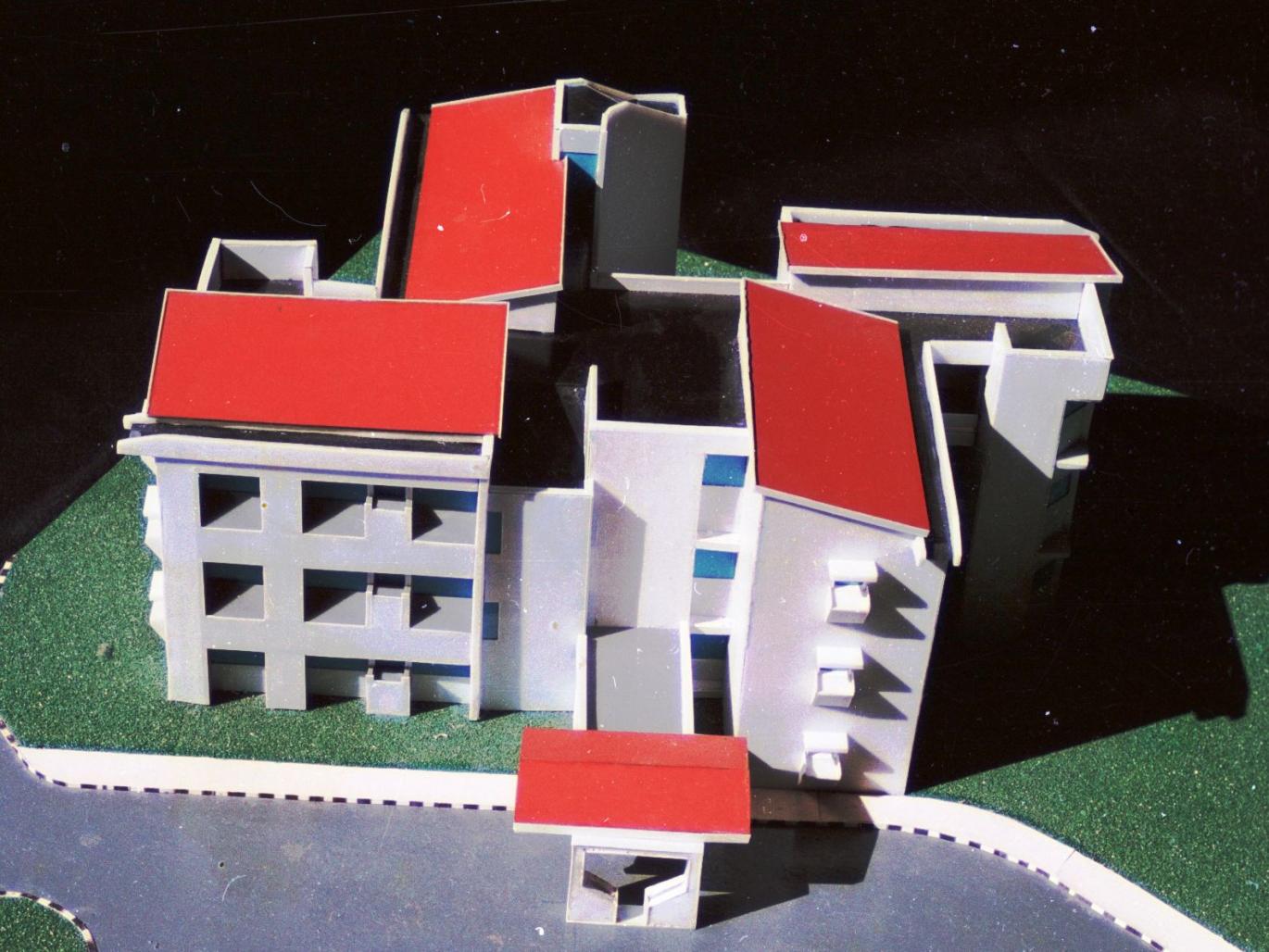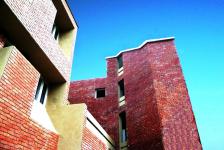 Conscious efforts have been made to protect the interiors from the harshness of summers. The building-form, with its four extended wings, ensures sufficient mutual shading for most part of the day, and thus remains cool by itself. The deeply-recessed windows and built-in cupboards along the external walls further help in keeping off the summer heat. Besides, a thoughtful placement of fenestrations ensures sufficient cross-ventilation. The slanting roofs not only help on draining off the storm water easily but also add to the grandeur of the architectural expression.