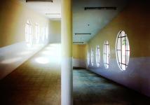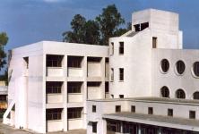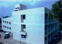 The massive and elongated structure of the ramp has been placed perpendicular to the main block and thus does not block the view, light and ventilation in the hospital. In plan it occupies the only available space adjacent to one flange of the existing OPD. Headroom space available underneath the ramp has been purposefully used as a link passage between the old and the new building. Entry to the new block has been made conspicuous by the juxtaposition of ramp, which cuts off unpleasant view of old structures in the background. The plastic and sculpturesque form of the staircase and ramp together with circular fenestration balances the simple cubical structure of the main block. The upgraded hospital complex is a pleasant blend of form and function as well as tradition and modernity. It portrays architects resolve that scarcity breeds innovation and constraint breeds peculiarity.